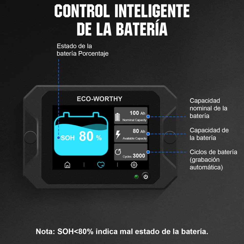 Monitor de batería con 3.5" pantalla táctil de 300A con sensor Hall para baterías AGM y de litio (LiFePO4)